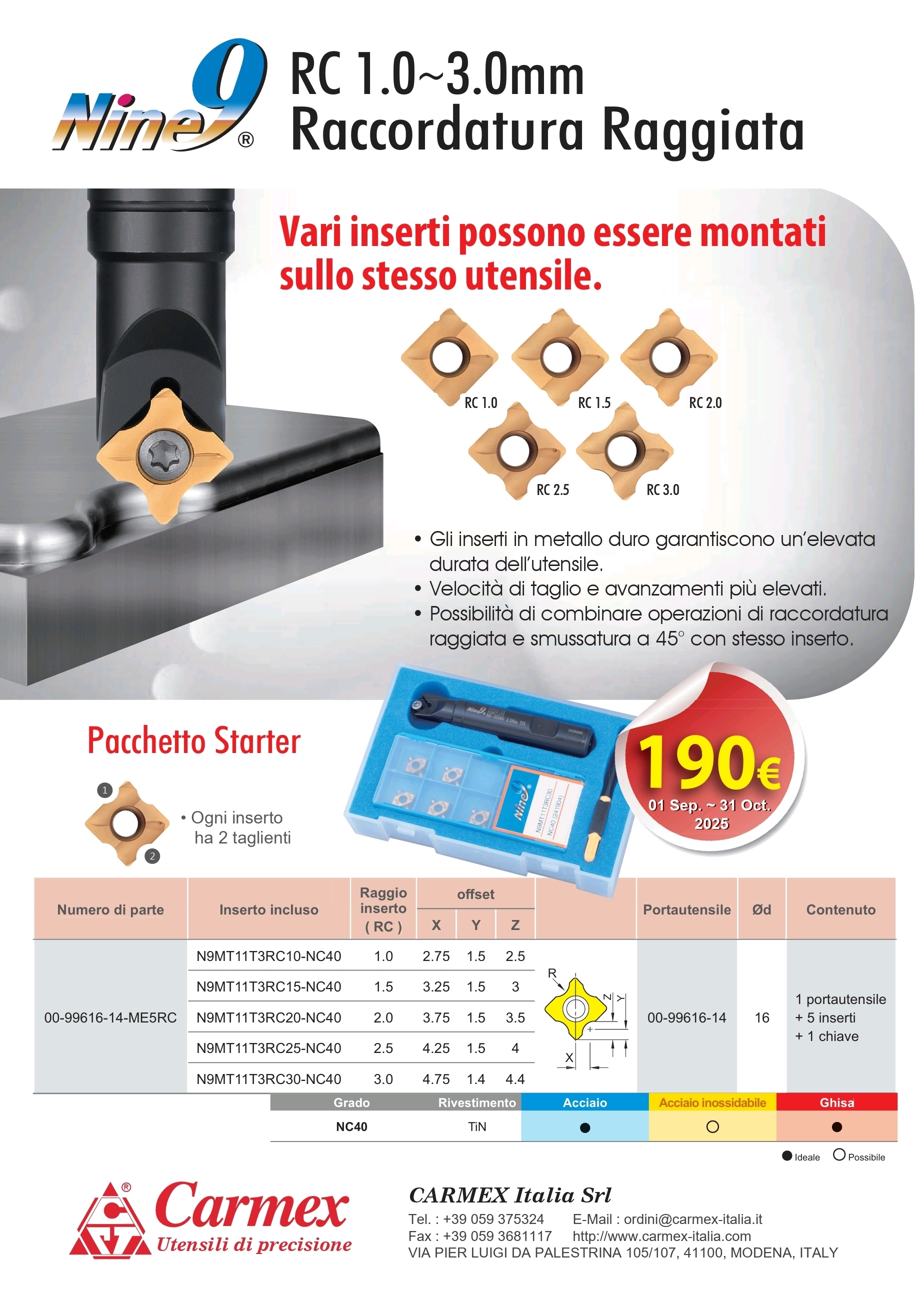 scanalatura), Smussatura e lamatura, consolidano Nine9 come leader di